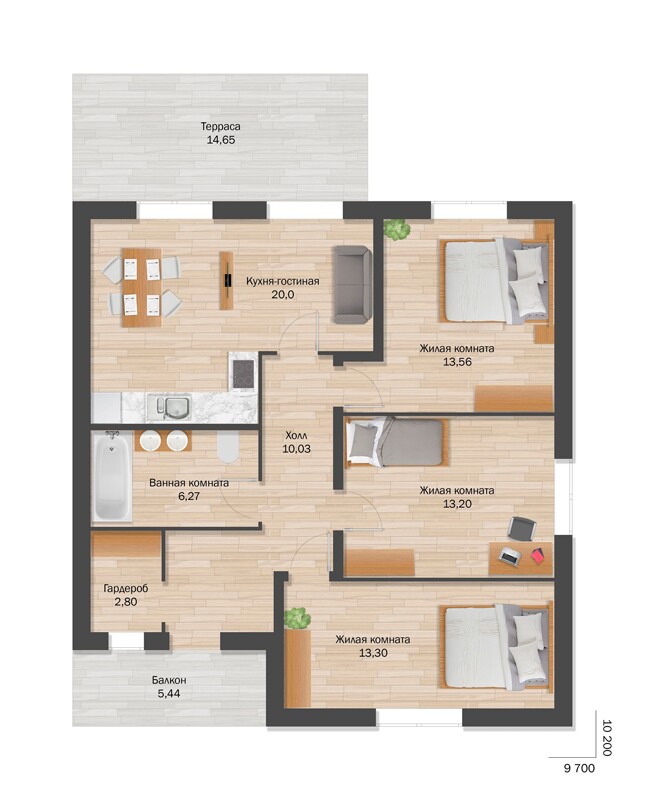 Размеры - 10,2х9,7 м